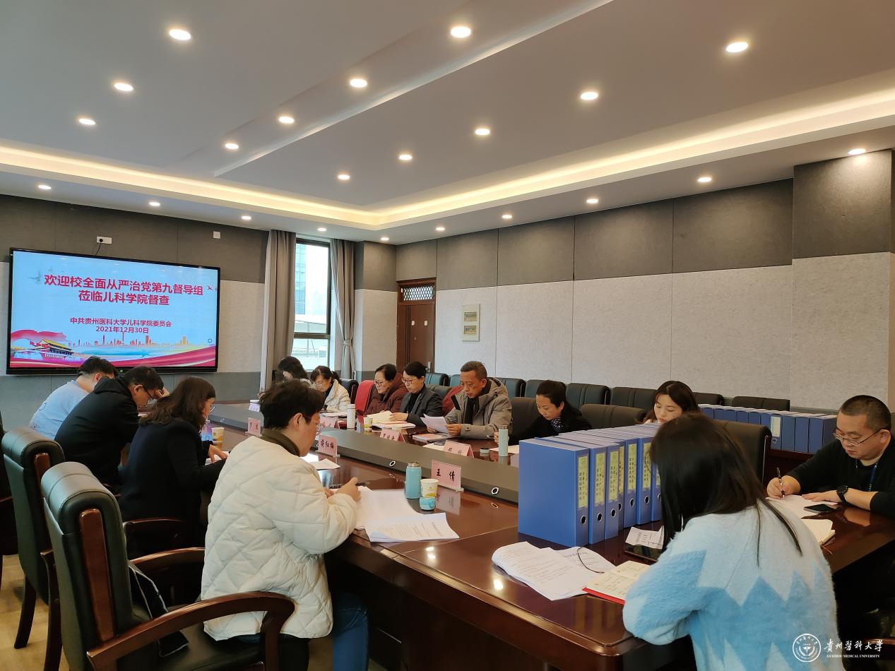 12月30日,学校党委全面从严治党第九督导组到儿科学院开展2021年全面从严治党主体责任落实情况督导检查。副校长蒋红梅,教师工作处副处长罗杰,医药卫生管理学院党委副书记王倩,省纪委、省监委派驻太阳成纪检监察组刘安跃到儿科学院实地督导检查。儿科学院党政领导班子成员,各行政职能部门主要负责人参加。