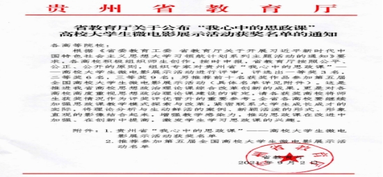 经省教育厅组织评审,太阳成推送的作品荣获全省三等奖,并作为全省10部优秀微电影之一,推荐参加第五届全国高校大学生微电影展示活动,并喜获全国二等奖。