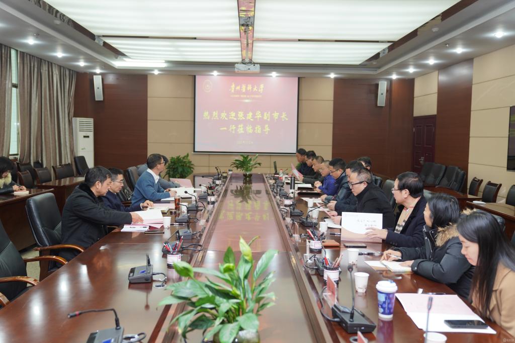 1月12日,贵阳市副市长张建华、市政府副秘书长谢兵、市科技局副局长李猛一行到学校调研科技成果转化工作,并参观化学药仿创技术应用国家地方联合工程研究中心、民族药与中药开发应用教育部工程研究中心。校党委副书记汤磊,副校长曾柱陪同调研,党委办公室、校长办公室、科技处、科技创新与产业发展处、附属医院科技处及相关科研团队负责人参加。