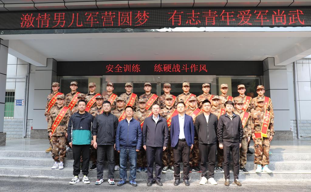 会后,汤磊与新兵学生进行合影留念。