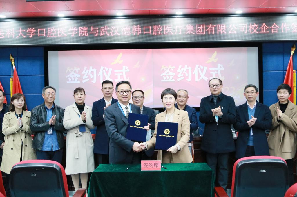 3月31日,口腔医学院与武汉德韩口腔医疗集团有限公司签署“校企合作横向科研专项基金管理协议”,聚焦科研发展、人才培养,深入开展校企合作。签约仪式在学院行政楼五楼会议室举行。副校长田晓滨、曾柱出席,武汉德韩口腔医疗集团有限公司副总裁吕艳,贵州片区总经理卢建峰,医疗总监丁笑乙,贵州片区名誉院长罗洪,贵州片区医疗院长王胜,口腔医学院党政领导及各教研室主任参加。