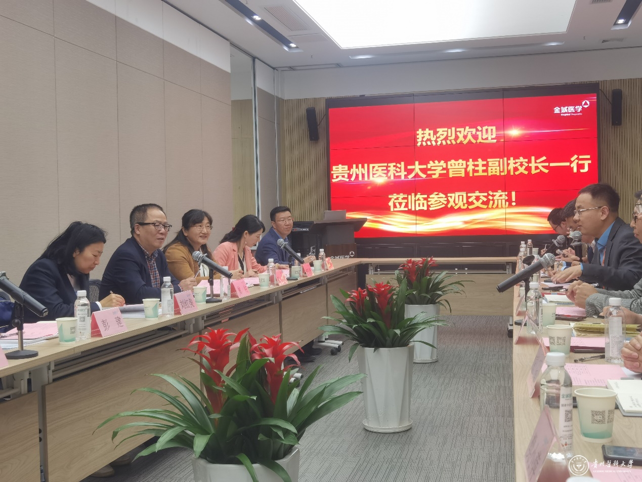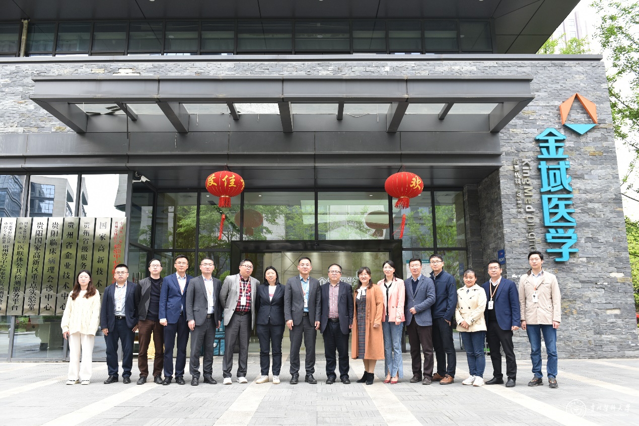 4月21日,副校长曾柱带领生物与工程学院党委书记封韬,院长刘红美,副书记李宗梅,生物技术教研室主任彭建,化学生物学教研室主任朱贵明,学院实训中心主任蓝静一行七人赴贵阳金域医学检验中心有限公司参观调研。金域医学检验中心有限公司贵州金域总经理朱国强,贵州金域副总经理付正乾、邵明亮,太阳成集团tyc33455cc官网生物与工程学院毕业员工代表及有关人员参加座谈。双方就共建产学研合作教育基地,推动校企共建共赢,促进学生就业等展开交流。