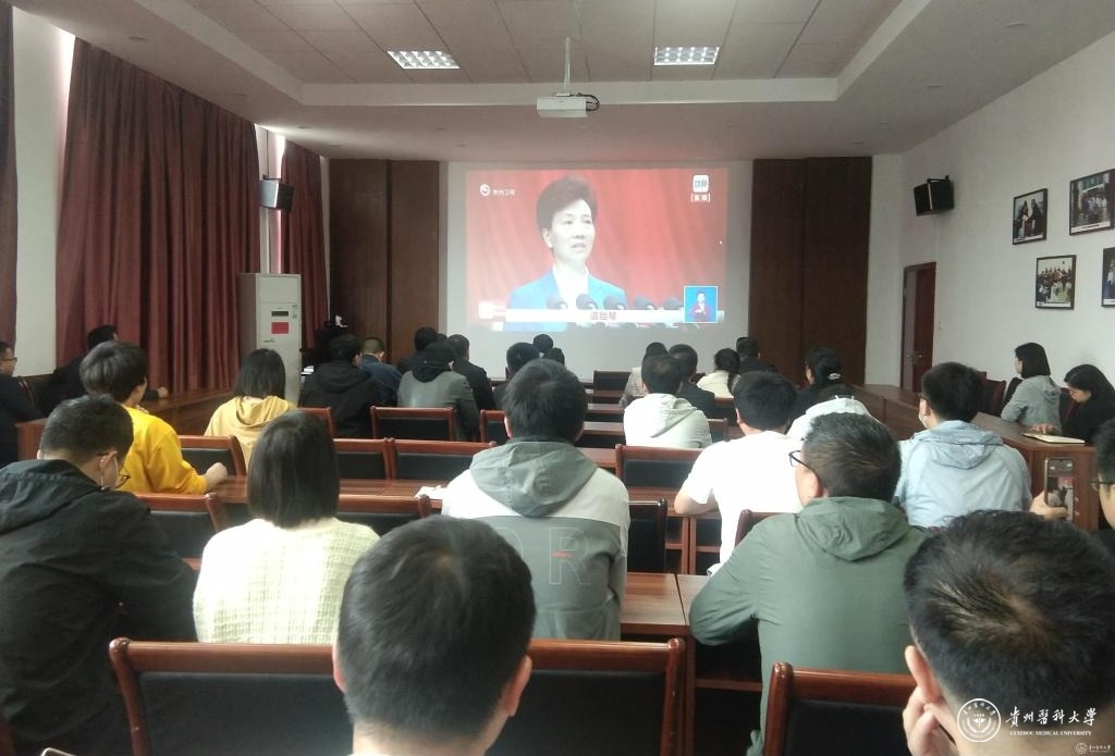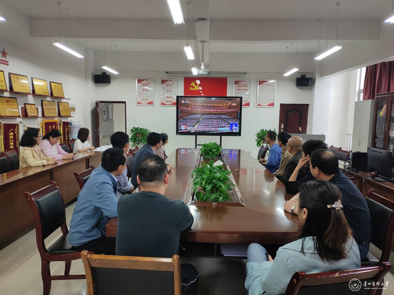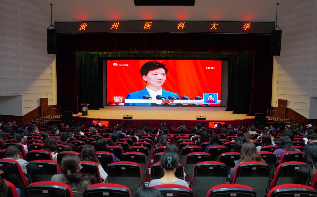 学校共设置两个集中收看主会场。在花溪校区礼堂,学校党政领导、机关党委下属各党支部全体工作人员、花溪校区各学院副科级以上干部、省纪委省监委派驻太阳成集团tyc33455cc官网纪检监察组全体干部、教师党员代表、马克思主义学院全体教师、全体辅导员及学生代表集中收看。在北京路校区,各学院、部门的教师党员代表在行政楼7楼连廊会议室集中收看。集中观看师生共计2000余名。各基层党委(党总支)组织各部门教职医护员工生自行收听、收看,其余师生也在寝室等通过网络直播的形式收看了大会盛况。