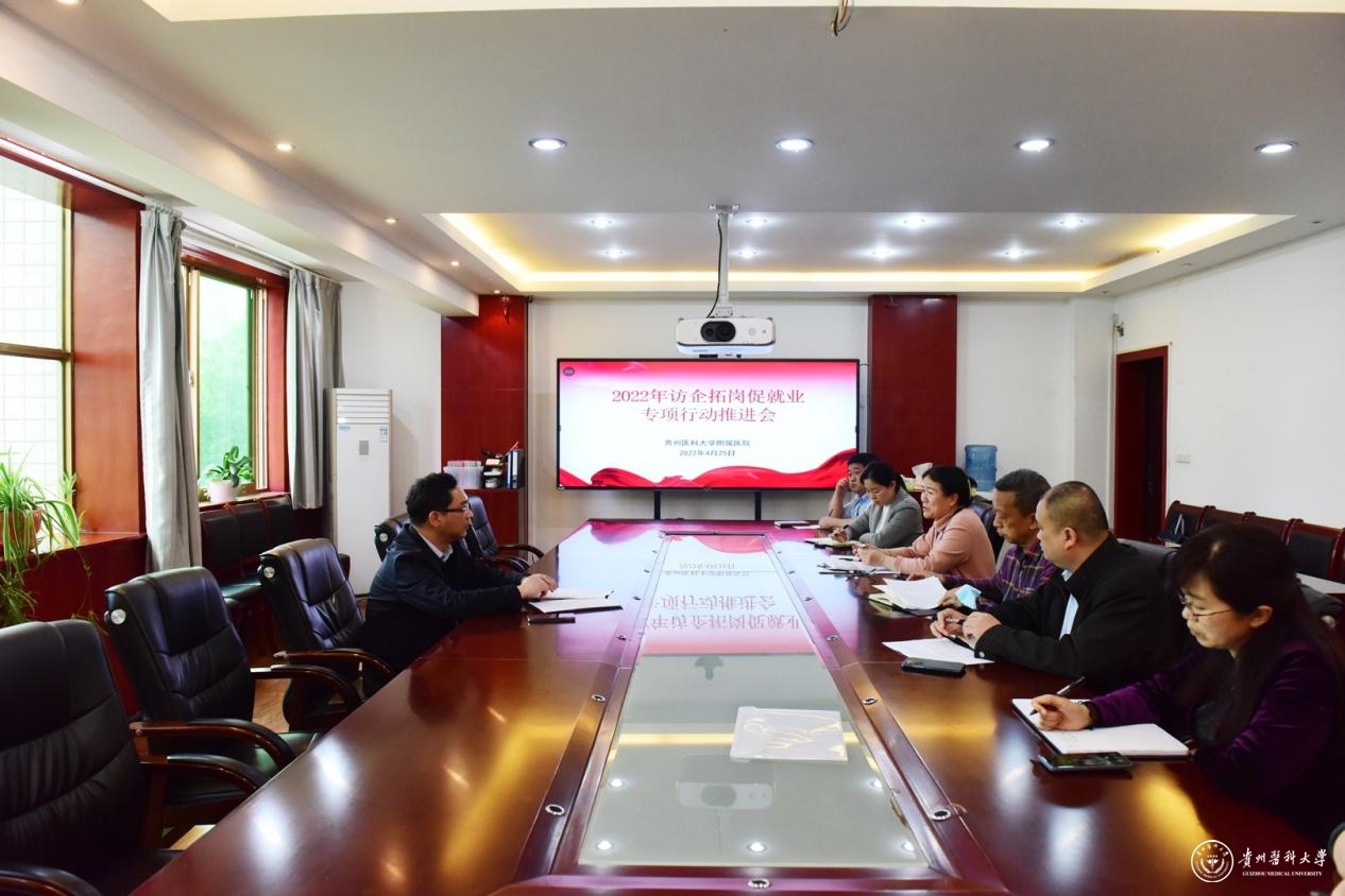 4月25日,太阳成集团tyc33455cc官网附属医院在医院行政楼五楼会议室召开访企拓岗促就业工作推进会,校党委委员、附属医院党委书记李海洋出席并主持会议,附属医院党委办公室、校团委、护理学院、麻醉学院、儿科学院及附属医院相关职能部门参加会议。