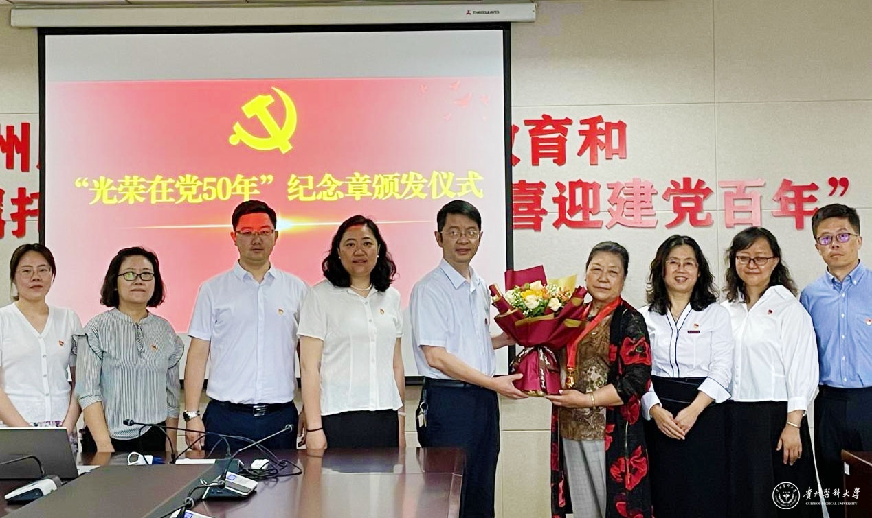 6月23日,学校在知雨楼413会议室举行“光荣在党50年”纪念章颁发仪式。校党委副书记刘文出席并讲话,仪式由副校长、党委组织部部长蒋红梅主持。党委组织部及离退休工作处党总支负责人参加。