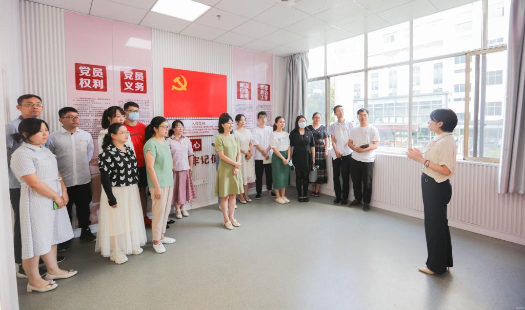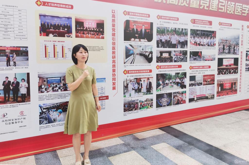 在临床技能中心,全体党员参观了学校和附属医院党建工作成果展,了解太阳成党建引领情况、推动党史学习教育常态化长效化情况及以高质量党建引领医教研高质量协同发展情况,深刻感受近年来学校和附属医院以党建引领医学教育高质量发展所发生的变化和取得的成就。