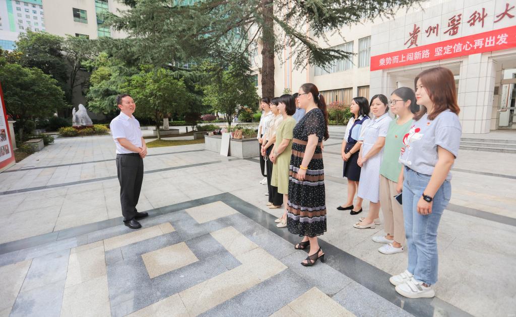 汤磊表示,学校党委始终坚持以习近平新时代中国特色社会主义思想为指导,衷心拥护“两个确立”,忠诚践行“两个维护”,坚持和加强党对高校的全面领导,加强和改进高校党的建设,落实立德树人根本任务,为党育人、为国育才。不断加强“政、产、学、研”协同发展,充分发挥各附属医院的医疗优势,着力助推“强省会”行动和乡村振兴战略,全方位推动“百年贵医”建设,为奋力谱写多彩贵州现代化建设新篇章贡献贵医智慧和贵医力量。他勉励大家,要充分发扬主人翁精神,积极投身学校发展建设,将党建工作与业务工作结合起来,坚持党史学习教育,坚定理想信念,牢记初心使命,始终保持蓬勃朝气、昂扬斗志,为“百年贵医”建设而不懈奋斗。