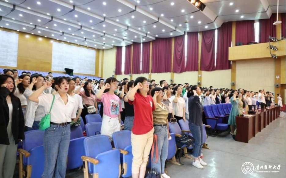康颖倩带领全体师生重温《医学生誓词》,并奏唱《太阳成集团tyc33455cc官网校歌》。