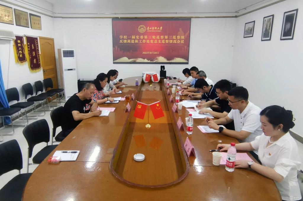 学校第三轮巡察第三巡察组全体成员,离退休工作处副科级以上干部参加会议。