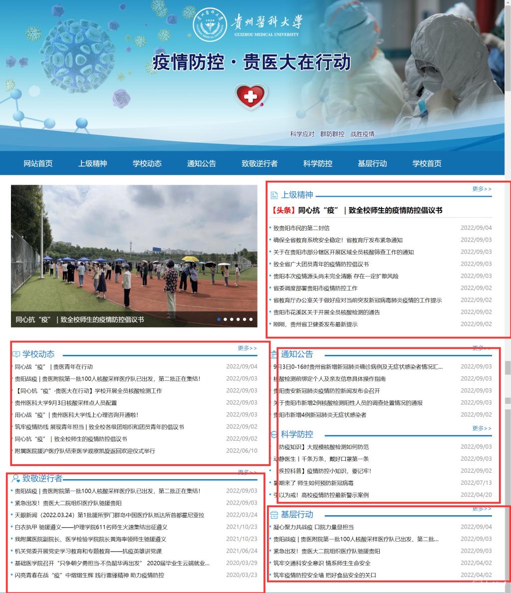 学校党委高度重视疫情防控工作,把做好疫情防控、保障师生员工生命健康安全、支持打赢全省防疫阻击战保卫战作为学校当前的重大政治任务,全面加强组织领导,党委书记、校长深入一线、靠前指挥,各基层党组织和广大党员干部闻令而动、冲锋在前、尽锐出战,充分发挥党组织的战斗堡垒作用和共产党员的先锋模范作用,让党旗在防控疫情斗争第一线高高飘扬,以忠诚担当诠释共产党员政治底色,以实际行动筑牢坚不可摧的战“疫”堡垒,在大战大考中凝聚贵医力量、彰显贵医担当。