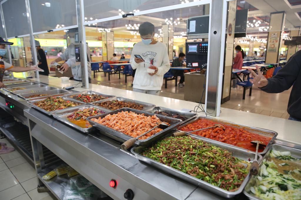 来到一食堂,三个楼层所有的供应窗口都开着,同学们喜欢吃的各种荤素搭配的快餐、烤肉饭、火锅米线、米粉面条、水饺馄饨、包子馒头、各种饼类和粥类等食物一应俱全,且种类丰富,让人眼花缭乱;生活超市也都开着,商品齐全,供应充足。“这几天除了不能随意外出和寄取快递之外,我没有感觉到明显的变化,食堂的饭菜和疫情前感觉也没有变化,种类还是一样的丰富,味道也还是熟悉的味道。超市的东西也很齐全,日常所用都能买得到。只是现在特殊时期,我们基本都是打好饭菜回到寝室吃。学校能在疫情期间让食堂‘保持原样’,感觉很安心,给学校点赞!”正在食堂买午饭的2021级临床医学专业严俊熙同学说到。