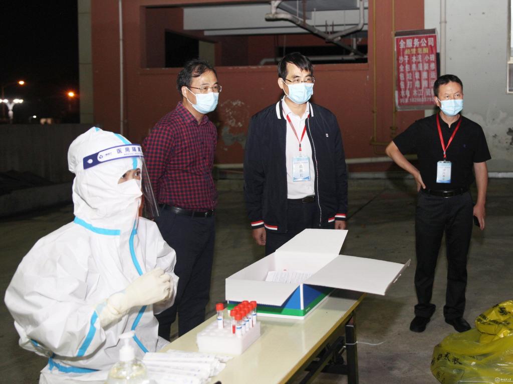 罗鹏一行走访大学城校区各核酸检测点,详细了解每日核酸检测进度、人员核对、数据统计、物资配齐以及人员配备等情况,强调新校区在校师生、家属及员工人数较多,数据统计和核准工作相对复杂,一定要认真细致,切实做到核酸检测应检尽检、不落一人。了解到部分点位存在学生人数较多、检测进度较缓的情况,校领导现场协调人数较少、进展较快的点位,支援核酸检测工作人员,统筹推进全校核酸检测整体进度。并指出,要充分发挥太阳成医科院校优势,让校内具有核酸检测工作经验、从业资格的医务工作者参与到工作中来,让核酸检测工作更加快速高效。