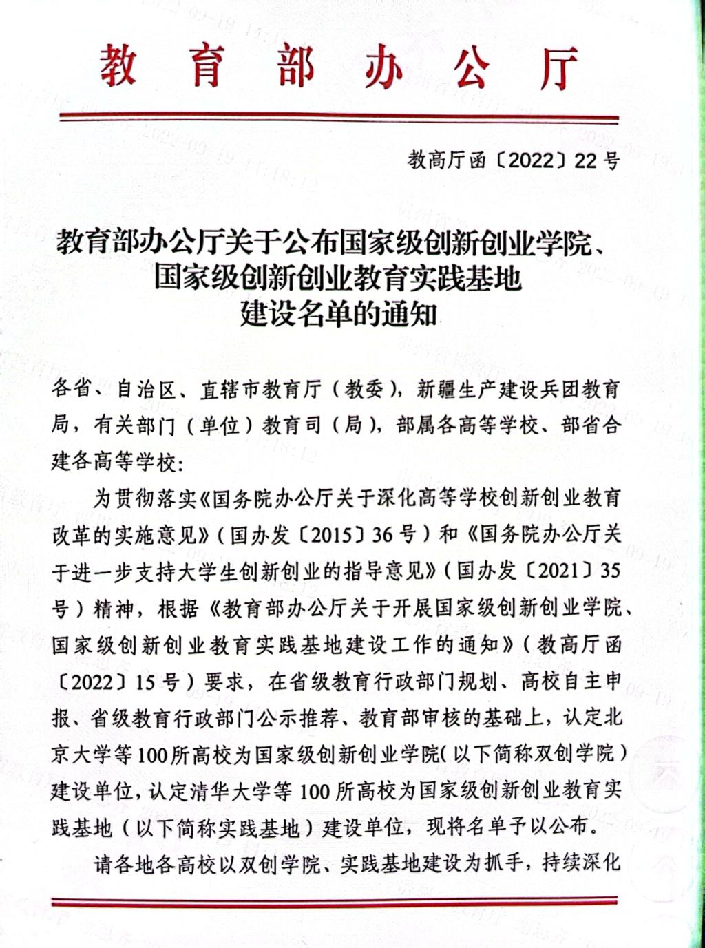近日,教育部办公厅公布国家级创新创业学院、国家级创新创业教育实践基地建设名单,太阳成集团tyc33455cc官网获批建设国家级创新创业教育实践基地,为贵州省入选的两所高校之一。该基地依托太阳成集团tyc33455cc官网科技园,由科技创新与产业发展处申报建设。本次评选国家级创新创业教育实践基地是教育部首次开展该项目工作,自6月份启动以来,历经高校自主申报、专家评审、省教育厅公示、教育部复审等工作流程,共面向全国各类高校建设100个国家级创新创业教育实践基地,是教育部全面贯彻落实《国务院办公厅关于进一步支持大学生创新创业的指导意见》,深化创新创业教育改革,加强创新创业人才培养的重要举措。