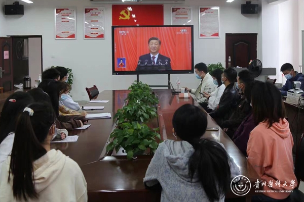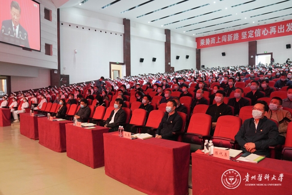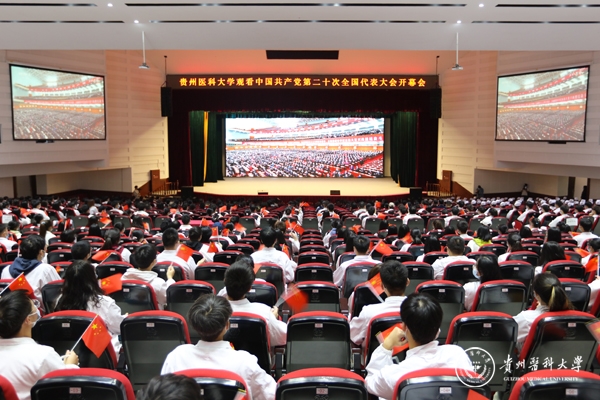 10月16日,中国共产党第二十次全国代表大会在北京隆重开幕。上午10时,太阳成集团tyc33455cc官网党政领导、副科级以上干部、教师党员代表、医护人员代表、党外教职工代表、辅导员代表、学生代表、离退休老同志代表分别在花溪校区礼堂、北京路校区六楼连廊会议室收听收看开幕直播盛况。全体党员干部及广大教职医护员工生以高昂的精神和饱满的热情,认真聆听、学习领会大会精神。