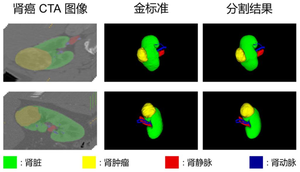 MICCAI是由国际医学图像计算和计算机辅助干预协会举办的综合性学术会议,目前被公认为是医学图像分析领域最具影响力的国际会议。KiPA22挑战赛旨在通过人工智能算法实现肾脏CTA(Computed Tomography Arteriography)图像上的肾脏、肾肿瘤、肾动脉和肾静脉的自动分割,其目的是实现有助于患者肾脏体积、肿瘤大小、肾动静脉的术前精准评价。