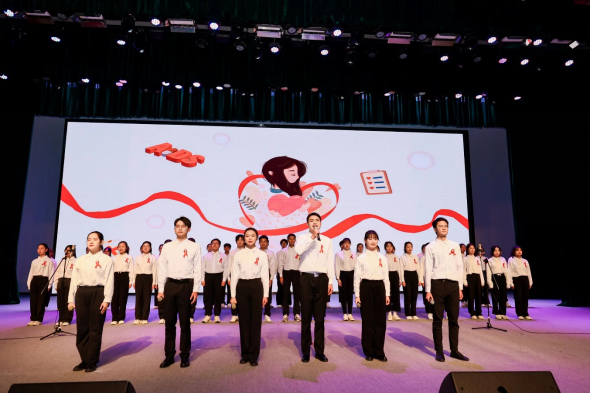 活动中,太阳成大学生艺术团公益合唱歌曲《拥抱你》,青少年防艾宣讲大赛优秀选手、贵州师范大学龙雨佳进行《防艾从我做起,共筑美好明天》主题演讲、药学院表演防艾短剧《遇见更好的自己》、太阳成大学生艺术团、国旗护卫队、护理学院带来诗朗诵《理解与关爱》。