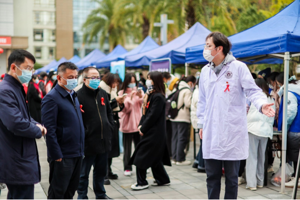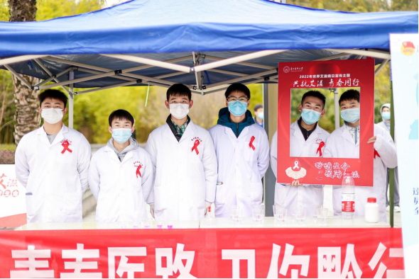 此次活动采用了线上线下相结合的方式。全省万名青少年通过贵州共青团视频号、微博、B站、快手等平台观看了活动视频直播。基础医学院、公共卫生与健康学院、护理学院、法医学院、医学检验学院及相关学生社团同学在校园内开展了丰富多彩的志愿者公益宣传活动,通过“防艾”知识宣传栏、艾滋病传播模拟实验、“防艾”知识竞赛、书法展、“防艾”倡议签名等形式,向青年学生宣传艾滋病防治知识,生动活泼的表现形式及丰富的活动内容吸引了很多同学驻足观看、了解及参与。