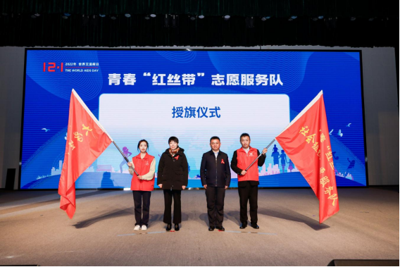 李剑、胡洲为“青春‘红丝带’大学生志愿服务队”太阳成集团tyc33455cc官网艾滋病青年同伴教育协会,“青春‘红丝带’社会组织志愿服务队”贵阳市彩艾阳光公益中心授旗,激励、号召更多青年团体参与艾滋病防治志愿活动,共同抗击艾滋,助力“健康贵州”建设。