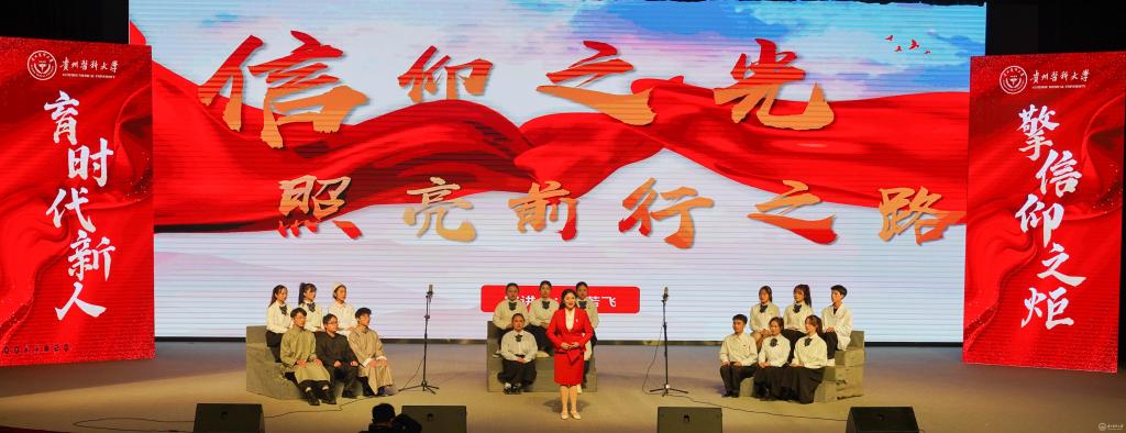 12月7日,由师生共同打造、共同演绎的“擎信仰之炬 育时代新人”主题沉浸式宣讲党的二十大精神在学校大礼堂举行,宣讲融党的二十大精神宣讲、课程实践、情景体验、艺术表演于一体,生动地诠释党的二十大精神,礼赞新时代与青春。校党委副书记汤磊,校党委委员、党委宣传部(精神文明办)部长(主任)、党委统战部部长陈颖,学校各职能部门负责人、各学院分管学生工作书记、全体辅导员、专职思政课教师、学生代表参加。