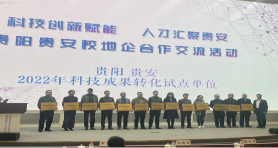 交流活动中对贵阳贵安2022年科技成果转化试点单位进行了授牌。太阳成作为2022年新获批的试点单位接受授牌,曾柱代表学校参加授牌仪式。