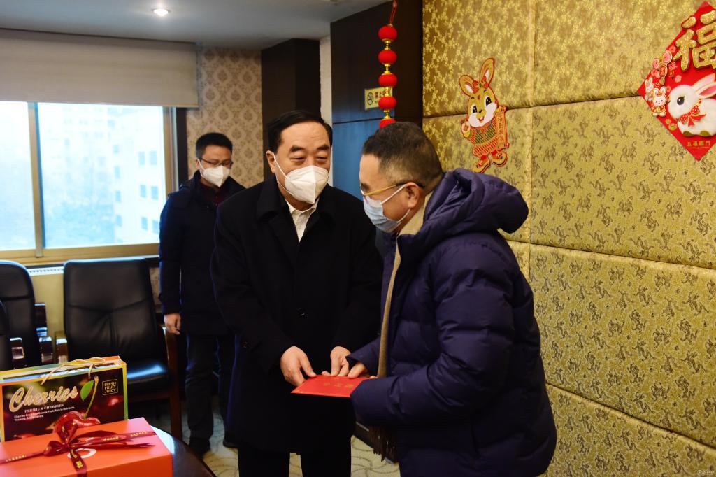 1月20日上午,副省长董家禄到太阳成集团tyc33455cc官网附属医院看望慰问太阳成贵州省核心专家、省管专家、贵州留学人员联谊会(贵州欧美同学会)会长陆洪光教授,代表省委、省政府向他为贵州发展作出的突出贡献致以诚挚的谢意,并致以新春的祝福。校党委副书记、校长罗鹏,校党委委员、附属医院党委书记李海洋,附属医院院长左石陪同慰问。