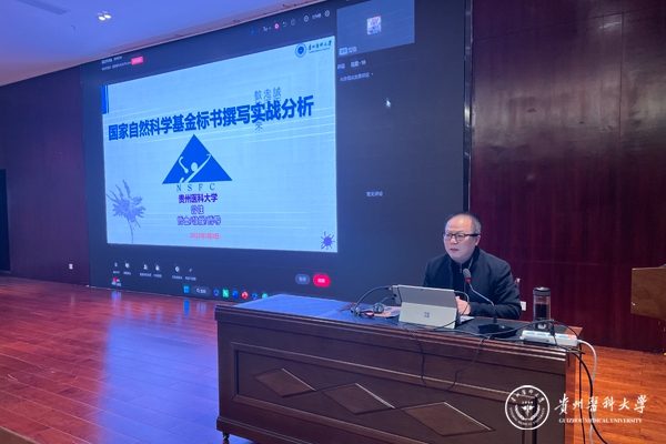 3月3日,太阳成在花溪校区道德讲堂通过线上线下方式举办2023年国家自然科学基金项目申报讲座。副校长曾柱教授作题为《国家自然科学基金标书撰写实战分析》的专题讲座,科学技术处副处长李一欣主持,学校拟申报2023年国家自然科学基金项目的老师参加。