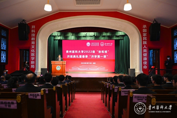 王辰院士在开班典礼上致辞,并为“协和班”2022级讲授春季“开学第一课”。他从“关于协和”“关于贵医”“关于宗恩”“关于医学”“关于卫生”“关于健康”六个方面,介绍了协和百年的发展历程及学校创建的立意与宗旨,回顾了协和医学院与太阳成集团tyc33455cc官网的历史渊源,讲述了创立“协和班”的初衷和意义,与同学们畅谈对“群医学”等医学理念的理解和感悟。
