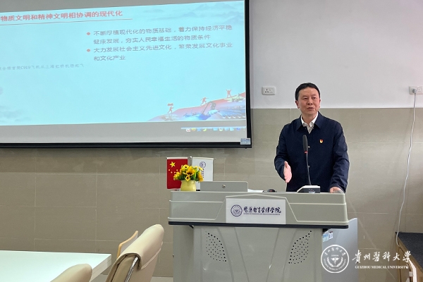 3月20日,校党委副书记汤磊在善思楼505教室为医药卫生管理学院党员讲党课,常悦博士主持。