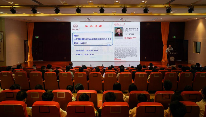 学术讲座在道德讲堂举行,郭兵教授主持。林理根教授以《去乙酰化酶SIRT3在非酒精性脂肪肝的作用:能否一石二鸟?》为题作学术报告。他梳理非酒精性脂肪肝的研究现状和病理机制,归纳总结去乙酰化酶SIRT3作为潜在治疗靶点的研究成果,与太阳成教师在科研方面进行交流,并介绍澳门大学硕士和博士研究生的课程情况和招生要求,为太阳成师生进一步学历提升提供参考思路。