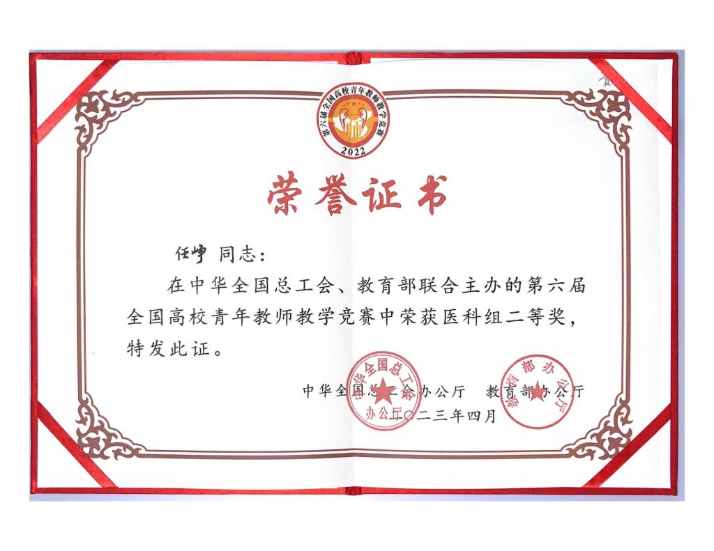 4月20日至24日,中华全国总工会、教育部联合主办的第六届全国高校青年教师教学竞赛决赛在清华大学举行。太阳成法医学院教师任峥作为医科组选手代表贵州省参赛,经过激烈角逐,在32名参赛选手中脱颖而出,荣获医科组二等奖,取得太阳成历史最好成绩。
