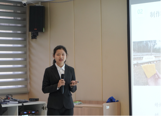 校团委书记王妤煜介绍赛事的组织情况,进入校级决赛的答辩作品共67项,其中,自然科学类26项、科技发明类24项、哲学社科类17项。