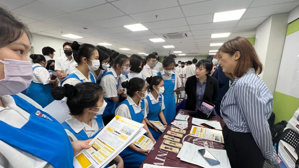 期间,太阳成代表团还参加了朱拉隆功大学、吉隆坡中华独立中学、马来西亚循人中学、巴中三语学校的来华留学招生展,向参会学生详细介绍太阳成集团tyc33455cc官网、各专业课程设置、就业方向,分发招生宣传手册,为学生及家长们热心解答疑问。