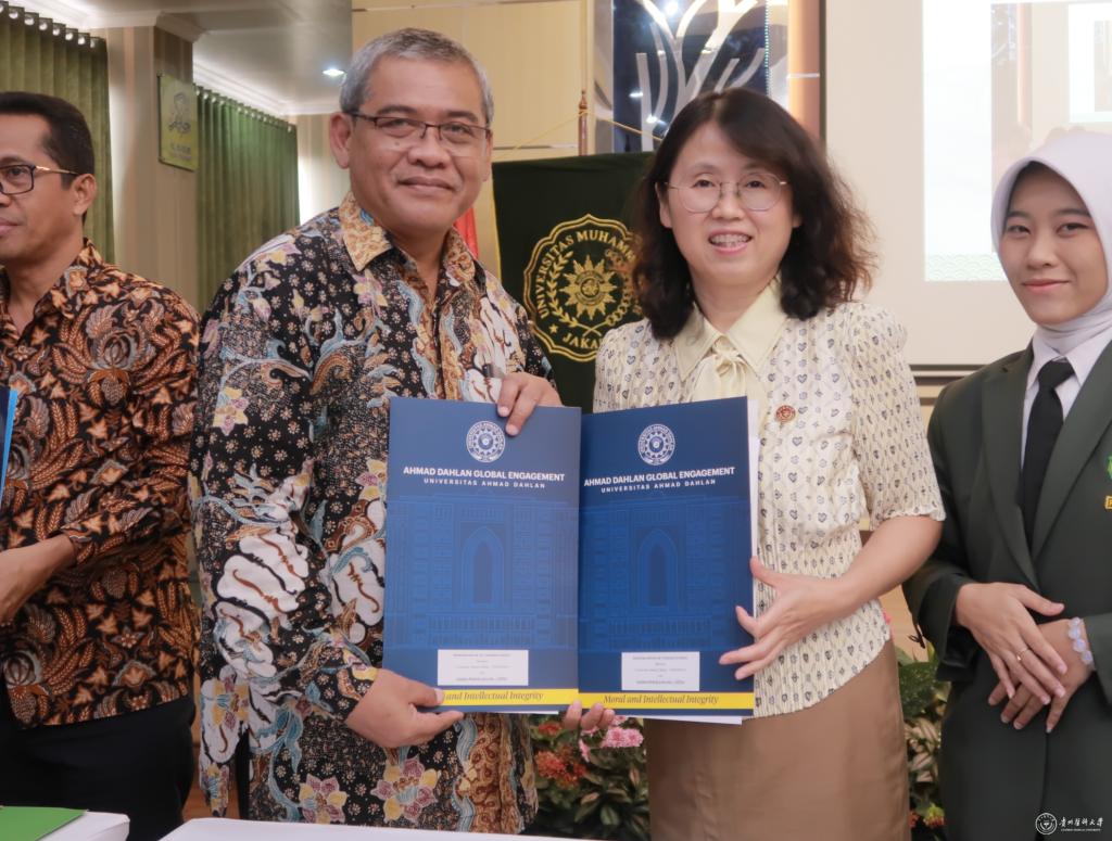 应印尼大学联盟的邀请,代表团到穆罕默迪亚雅加达大学(Jakarta Muhammadiyah University (UMJ)),参加印尼大学联盟(Indonesia China University Alliance)合作研讨会暨中印高校合作备忘录签署仪式,雅加达地区高等教育局局长 Dr. Paristiyanti Nurwardhani, M.Sc、印中大学联盟主席Prof. Dr. Gunawan Suryoputro,印中商务理事会会长吴桂林参加会议,印尼大学联盟各高校代表列席。会上,蒋红梅代表太阳成与印尼大学联盟21所高校签署合作备忘录并交换纪念品。太阳成代表团介绍学校心理学专业及护理学专业的培养模式、办学规模等,受到与会人员的广泛关注。