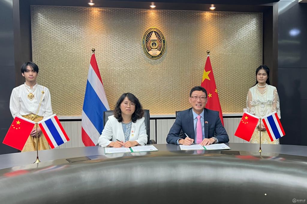 在泰国宣素那他皇家大学,校长卢德古威查热情迎接并召开交流洽谈会。泰国宣素那他皇家大学国际教育中心主任孙磊介绍宣素那他皇家大学在国际交流合作方面的成果。蒋红梅介绍太阳成集团tyc33455cc官网概况,代表学校与泰国宣素那他皇家大学签署合作意向书,并交换纪念品。