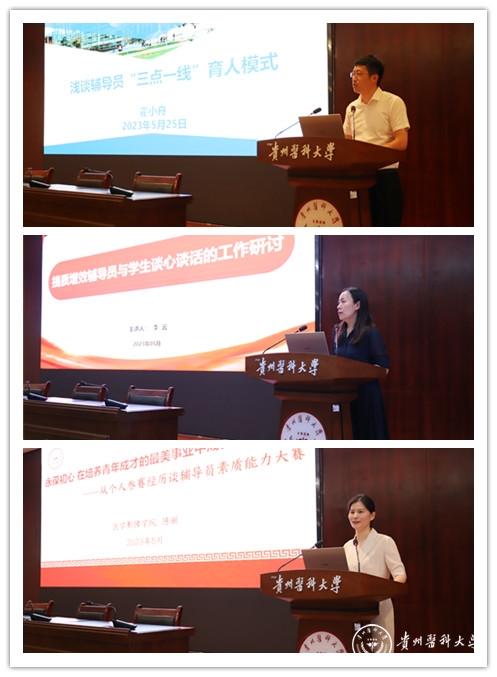 在论坛交流阶段,霍小舟以《浅谈辅导员“三点一线”育人模式》为题,李云以《提质增效辅导员与学生谈心谈话的工作研讨》为题,陈丽以《永葆初心 在培养青年成才的最美事业中成就更好的自己》为题,分享了各自辅导员工作经历和经验,为辅导员提供了实用的工作技巧。