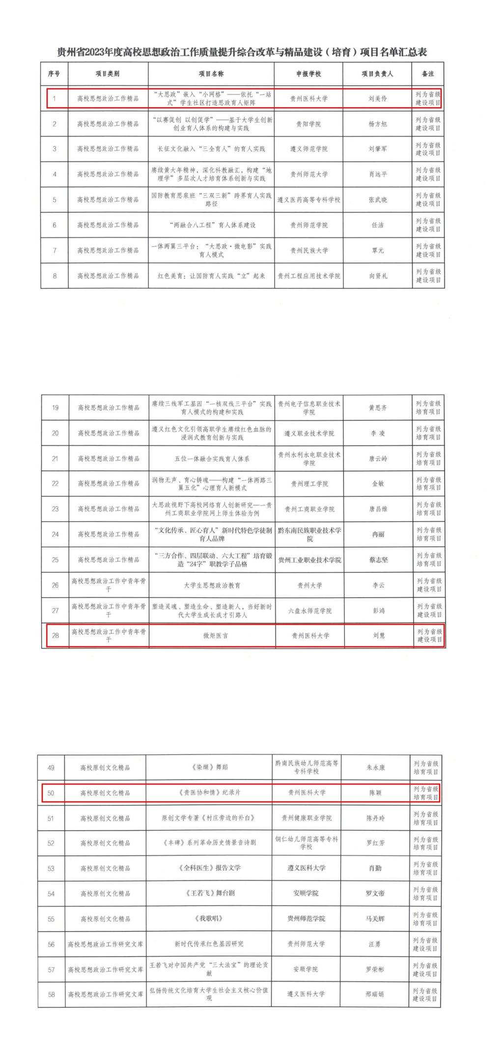 近日,省教育厅办公室公布了贵州省2023年度高校思想政治工作质量提升综合改革与精品建设(培育)项目名单。太阳成推送的《贵医协和情》纪录片(项目负责人:陈颖)获省级“高校原创文化精品”立项;《“大思政”嵌入“小网格”——依托“一站式”学生社区打造思政育人矩阵》(项目负责人:刘美伶)获省级“高校思想政治工作精品项目”建设(培育)项目立项;《微炬医言》(刘慧)获省级“高校思想政治工作中青年骨干”建设(培育)项目立项。