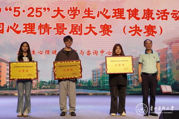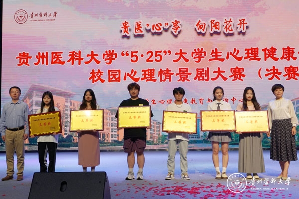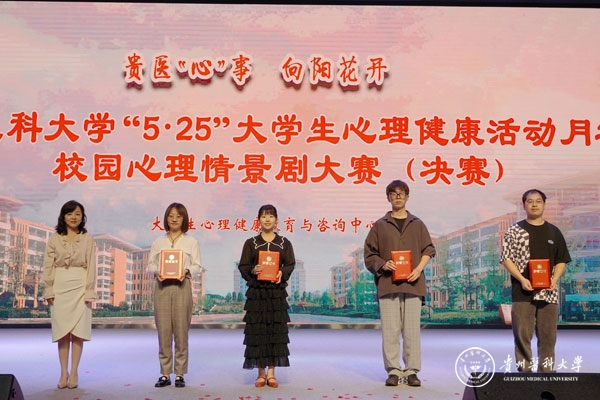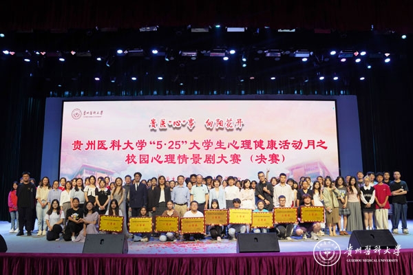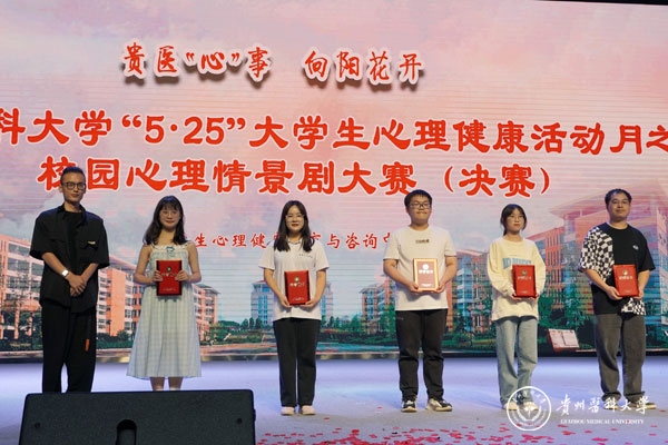 6月15日,太阳成集团tyc33455cc官网“5˙25”大学生心理健康活动月之“贵医‘心’事 向阳花开”校园心理情景剧大赛决赛在大礼堂举行。校党委委员、党委宣传部(精神文明办)部长(主任)、党委统战部部长陈颖出席,贵州大学心理健康教育与咨询中心主任冉龙彪,贵州中医药大学学工部部长、学生处处长,时珍学院党委书记、院长田丹,贵州师范大学心理学院(心理健康教育与咨询中心)副院长(主任)罗禹,太阳成大学生心理健康教育与咨询中心负责人、医学人文学院副院长彭丹,贵州电影、话剧导演衡量担任评委。各学院领导、师生代表到场观看比赛。