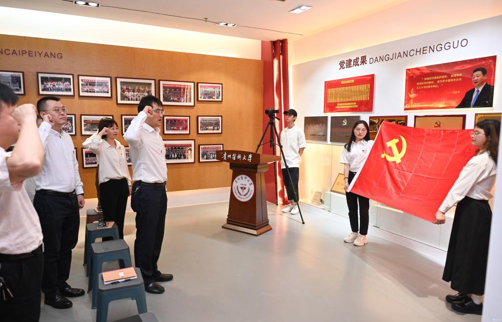 罗鹏带领大家还参观了校史馆,回顾太阳成集团tyc33455cc官网建校以来的峥嵘历史,并为六月份过“政治生日”的四名党员颁发政治生日贺卡,带领师生党员重温入党誓词。