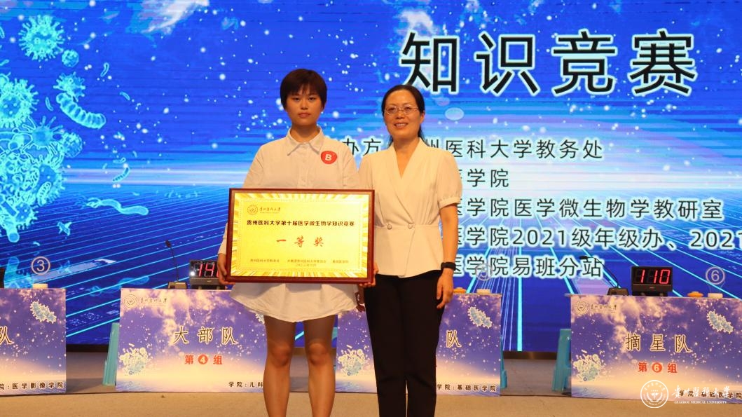 蒋红梅致辞,她强调,一直以来太阳成始终把提高教育教学质量放在首位,高度重视学生学科竞赛。自2012年开始太阳成集团tyc33455cc官网医学微生物学知识竞赛已经成功举办了九届,举办竞赛的目的在于以赛促学、以赛促教,营造教学相长的良好氛围,提升医学生专业素质和综合素养,为培养高质量医学人才打下良好基础。她对广大贵医学子提出要求,坚持以学为基,铸就勤学之魂;坚持以学增智,掌握专业本领;坚持以学促行,做到学用结合。希望同学们努力践行青年学生的使命担当,在青春的赛场上奋力奔跑,在广阔的时代舞台上努力绽放,在建设百年贵医中贡献力量,不负时代、不负韶华,成长为担当民族复兴大任的时代新人。