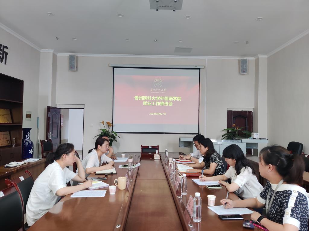 6月27日,校党委委员、副校长、党委组织部部长蒋红梅到外国语学院召开就业工作推进会。招生就业处处长张红霞、党委教师工作部(教师工作处)部长徐国强、招生就业处综合科科长张洁、外国语学院党委书记张婷婷、副院长冉海勇、党委副书记马琳娜和学院就业帮扶教师代表参加。