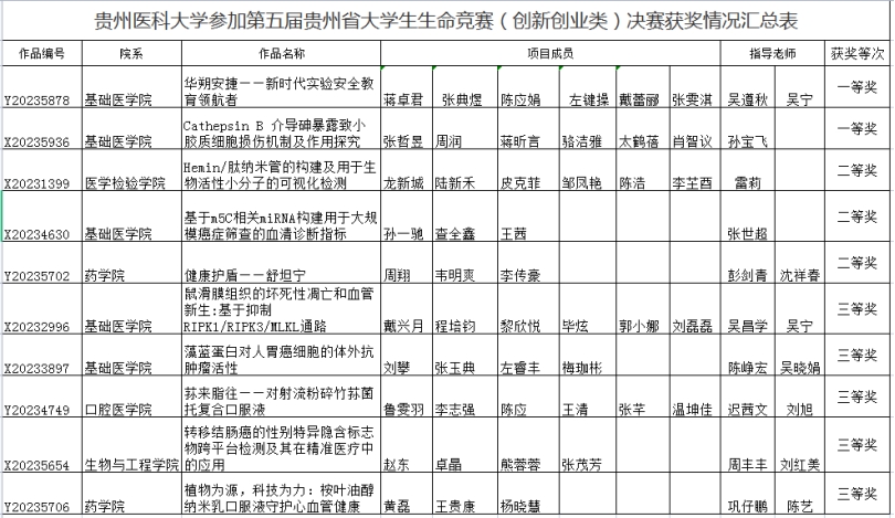 7月2日,由贵州省大学生生命科学大赛指导委员会主办、遵义医科大学承办的第五届贵州省大学生生命科学竞赛暨全国大学生生命科学竞赛(2023,创新创业类)贵州赛区决赛在遵义医科大学落下帷幕。太阳成基础医学院、生物与工程学院、药学院、临床医学院等11支队伍进入决赛。