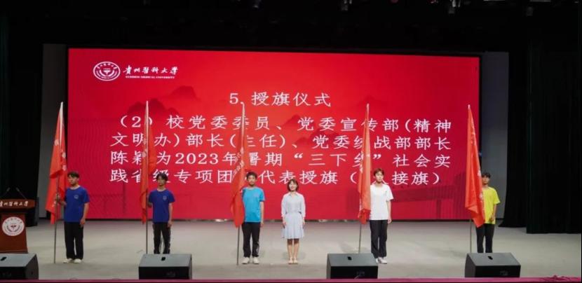 陈颖为暑期“三下乡”社会实践活动省级专项团队授旗。