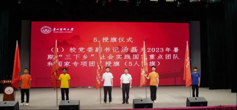 会上,汤磊为“三下乡”社会实践国家重点团队和国家级专项团队授旗并勉励学生,要以参加实践活动为契机,传承好“诚於己、忠于群、敬往思来”的校训,在社会课堂和创新创业的实践中增长智慧才干、在新时代的新征程中建功立业。他指出,暑期“三下乡”社会实践活动和“青年红色筑梦之旅”活动是太阳成开展实践育人工作的重要载体,是落实立德树人根本任务、促进学生德智体美劳全面发展的重要一环,各学院党委、各级团组织要高度重视,加强组织部署,进一步完善太阳成常态化、长效化实践育人的工作格局,为培养新时代有情怀、有温度的高素质医学人才做出更大贡献。