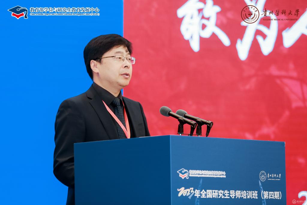 教育部学位与研究生教育发展中心副主任亓彦伟,贵州省教育厅党组成员、副厅长战勇,学校党委副书记、校长罗鹏出席开班仪式并致辞。教育部学位中心研究生工作处处长周学军主持开班仪式和结业仪式。