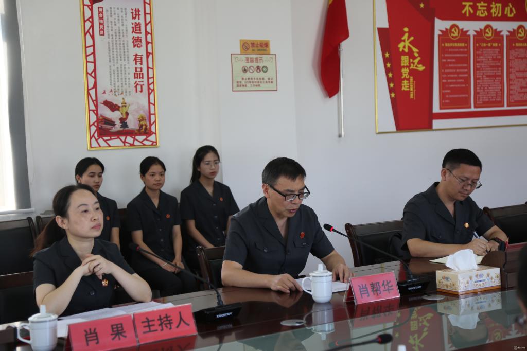 肖帮华介绍平坝区人民法院的基本情况,并表达共建合作的愿景。期望双方在服务法治建设的基础上,携手同行,探索应用型、复合型人才培养新通道。深入推进双方在法律实务、教学科研等方面的深度合作。