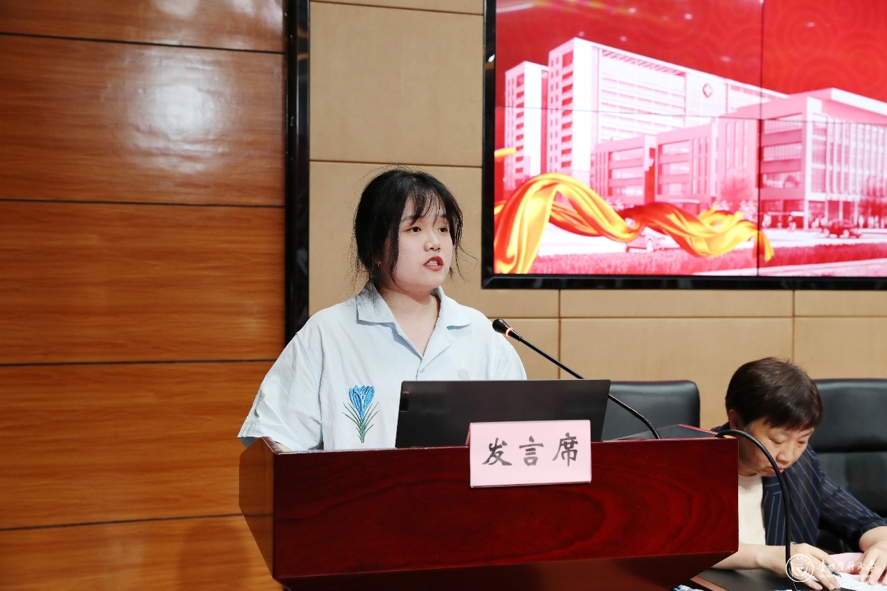 蒋红梅向新入学的同学们表示欢迎,并介绍学校的历史和现在的办学情况。她要求,同学们要涵养家国天下的“大格局”,做有高度的“贵医人”,将家国情怀融入医者仁心,用心领会“诚於己、忠于群、敬往思来”的贵医校训内涵,努力成为“立大志、明大德、成大才、担大任”的时代新人。要树立成就梦想的“大志向”,做有气度的“贵医人”,永葆医学初心,涵养讲奉献能担当的高尚道德品格,练就迎难而上、攻坚克难的勇气与信心和敢闯敢干、绝不言弃的胆识与气魄,做守护人民群众健康的行业新军,为贵州医疗卫生事业发展注入更多的新鲜血液与动力。要抱定勤能补拙的“大智慧”,做有厚度的“贵医人”,注重创新精神和创新能力的培养,主动学习专业知识,不断提高自身的专业修养和社会实践能力,努力提升为人民健康服务的本领。要秉承济世救人的“大情怀”,做有温度的“贵医人”,从中华民族传统美德中汲取道德滋养,从英雄人物和时代楷模的身上感受精神风范,牢记许下的医学生誓言,严于律己,刻苦钻研,做奋发有为的强国青年。