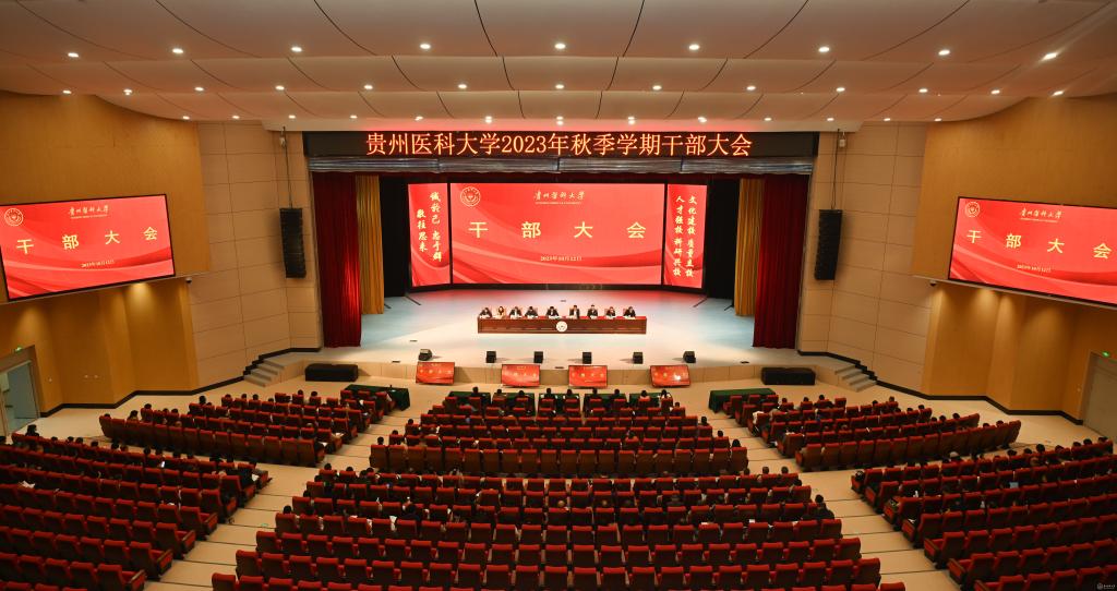 10月12日下午,学校2023年秋季学期干部大会在云漫湖校区刚刚落成的大礼堂召开。党委副书记、校长罗鹏总结回顾上学期工作推进落实情况,并安排部署本学期工作。校领导刘文、汤磊、曾柱、蒋红梅、沈祥春以及附属医院领导左石、天产中心领导孙超出席。天产中心、附属医院、第二、第三附属医院、附属口腔医院、大学城医院副处级以上干部,附属肿瘤医院、白云医院、乌当医院党政主要负责人,省纪委省监委派驻太阳成集团tyc33455cc官网纪检监察组全体成员以及学校各民主党派基层主要负责人、副科级以上干部(含教研室负责人)参加。