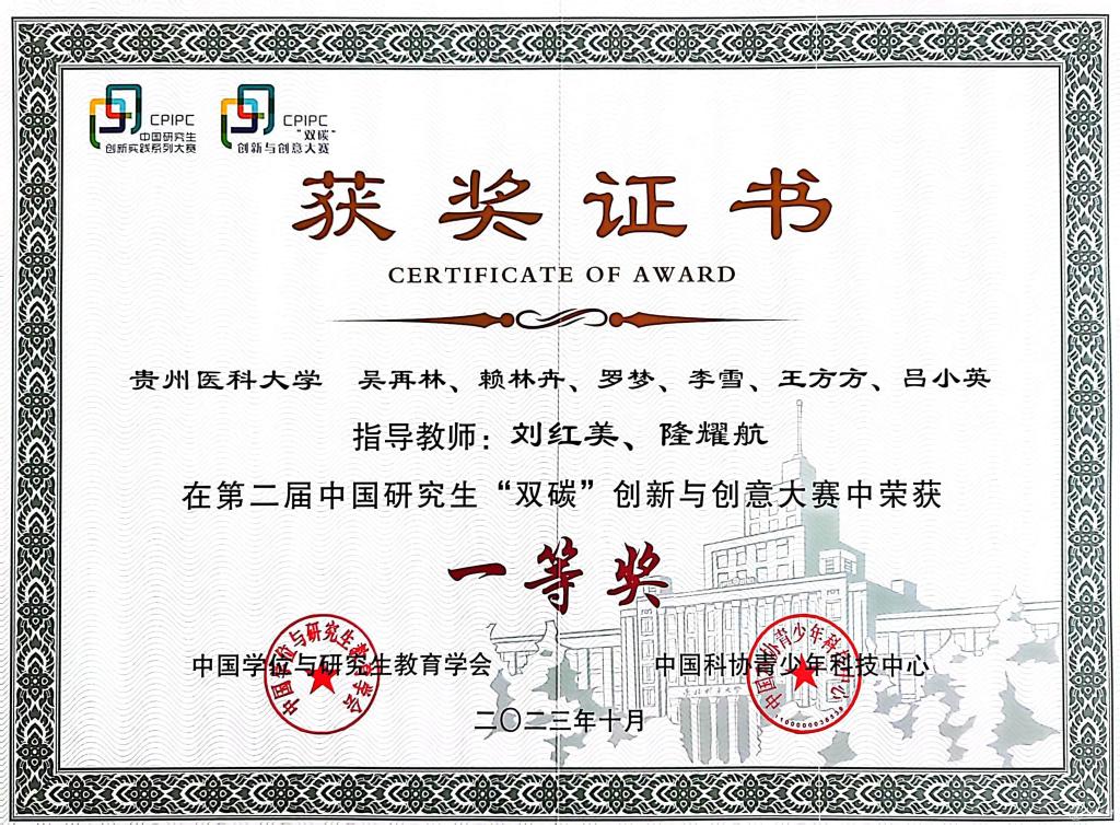 10月28日至29日,第二届中国研究生“双碳”创新与创意大赛决赛在哈尔滨举行。 太阳成生物与工程学院(健康医药现代产业学院)院长刘红美教授、隆耀航副教授指导学生吴再林、赖林卉、罗梦、李雪、王方方、吕小英完成的“基于循环经济的喀斯特双碳探索与生态产出”项目经过初赛、复赛的层层角逐,成为全国唯一一个医科类院校在该项赛事上入围决赛的项目,并最终荣获全国一等奖。指导教师刘红美、隆耀航荣获“优秀指导教师”。