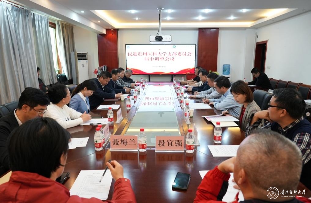 11月9日,民进太阳成集团tyc33455cc官网支部委员会届中调整会议在太阳成北京路校区召开。民进贵州省委主委、贵州省卫健委主任孙发,校党委副书记汤磊,党委委员、附属医院党委书记李海洋,民进贵州省委副主委、副校长沈祥春,党委委员、党委宣传部(精神文明办)部长(主任)、党委统战部部长陈颖,附属医院党委副书记代宏出席。附属医院党办主任岳萍、民进贵医支部委员及会员代表、党委统战部全体工作人员参加。沈祥春主持会议。