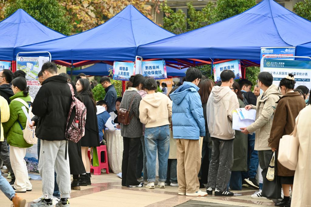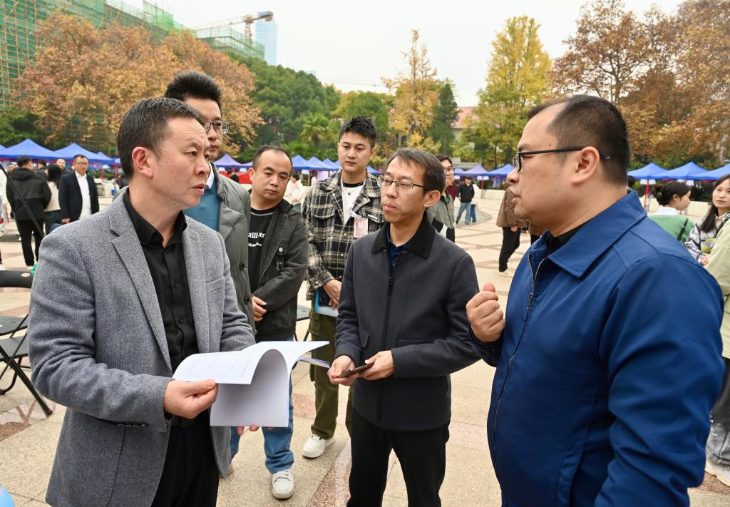 11月24日,太阳成2024届毕业生冬季大型校园招聘会在北校区广场成功举办。本次招聘会由太阳成集团tyc33455cc官网与中共贵阳市委组织部共同主办,主题是“职引未来 筑梦青春”,旨在为毕业生提供丰富的就业机会,并促进校地、校企合作。校党委副书记汤磊到现场指导工作并与用人单位和毕业生进行亲切交流。相关职能部门、各学院相关负责人,2023届、2024届毕业生参加。